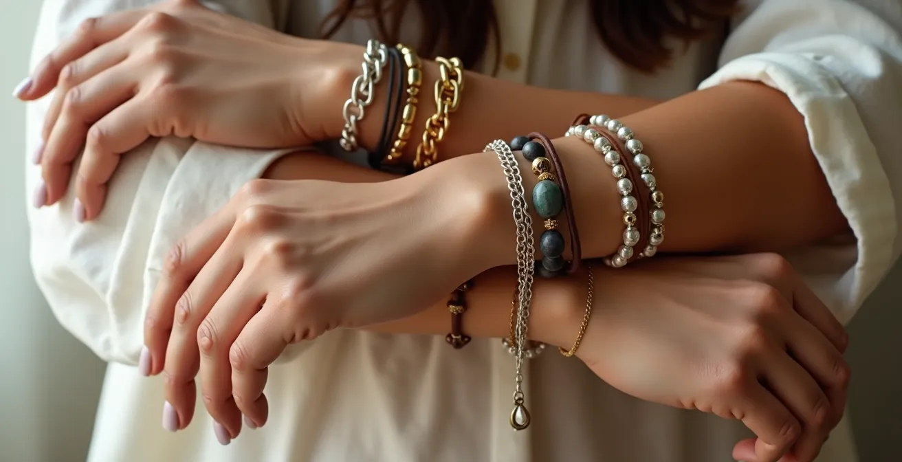 Fühlen Sie es auch? Das leise Zögern, ein Armband anzulegen. Vielleicht empfinden Sie es als störend beim Tippen am Laptop, als unpraktisch im Alltag oder Sie sind unsicher, wie dieses kleine Detail zu Ihrem Stil passen soll. Viele Frauen lassen ihre Handgelenke nackt, nicht aus Mangel an schönen Stücken, sondern weil das Armband als Accessoire oft unterschätzt und missverstanden wird. Es wird als reines Dekorationselement gesehen, das zu einem Outfit passen muss, anstatt sein wahres Potenzial zu erkennen.