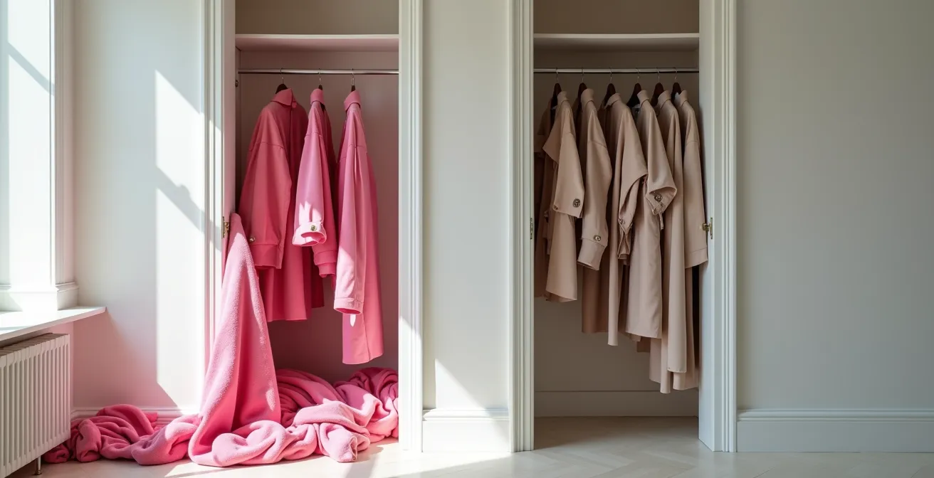 Analysieren Sie ehrlich Ihren Lebensstil: Verbringen Sie 70% Ihrer Zeit im Büro, 20% zu Hause und 10% bei besonderen Anlässen? Dann sollte Ihr Kleiderschrank diese Verteilung widerspiegeln. Viele Schränke sind voll von Event-Kleidung, obwohl der Alltag dominiert. Eine kohärente Farbpalette mit 2-3 Hauptfarben (z.B. Navy, Creme, Grau) und 1-2 Akzentfarben (z.B. Bordeauxrot) sorgt dafür, dass alles zueinander passt. Das Resultat ist nicht weniger Auswahl, sondern weniger Entscheidungsstress und das befreiende Gefühl, immer perfekt angezogen zu sein.
