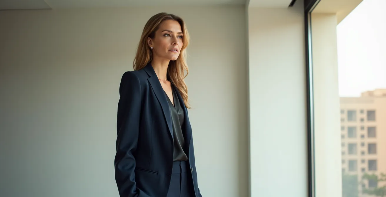 Kennen Sie das Gefühl? Sie haben in ein hochwertiges Outfit investiert, tragen eine elegante Tasche und sorgfältig ausgewähltes Make-up, doch im entscheidenden Moment fühlen Sie sich trotzdem unsichtbar. Sie betreten einen Raum und haben das Gefühl, an den Wänden zu kleben, während andere mühelos alle Blicke auf sich ziehen. Viele Ratgeber empfehlen in solchen Momenten die klassischen Werkzeuge des „Power Dressing“: einen scharf geschnittenen Blazer, hohe Absätze oder eine dominante Farbe. Doch oft fühlen sich diese Lösungen wie eine Verkleidung an, eine Rüstung, die mehr verbirgt, als sie offenbart.