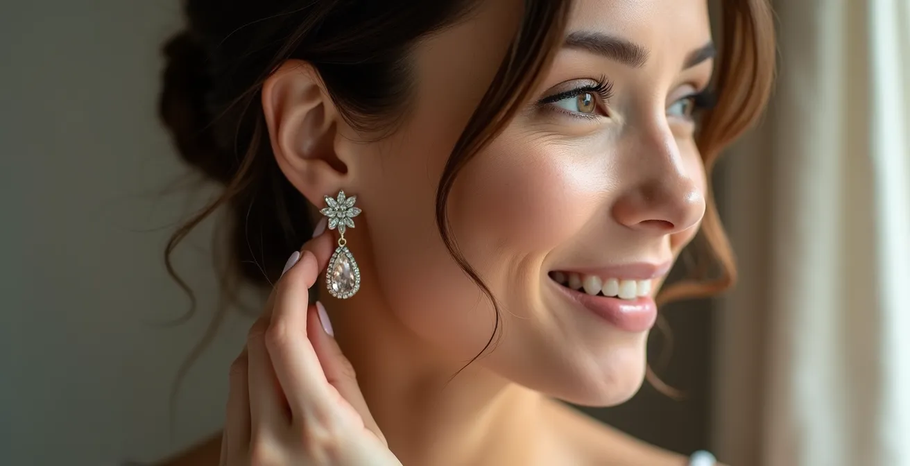 Die üblichen Ratschläge kennst du sicher: „Lange Ohrringe für runde Gesichter, runde für eckige.“ Diese Grundregeln sind nicht falsch, aber sie kratzen nur an der Oberfläche. Sie erklären nicht, warum manche großen Kreolen im Büro absolut professionell wirken, während andere billig aussehen. Sie erklären auch nicht, wie ein winziger Ohrstecker ein Doppelkinn effektiver kaschieren kann als ein langer Hänger. Die wahre Meisterschaft liegt nicht im starren Befolgen von Form-zu-Form-Regeln, sondern im Verständnis der dahinterliegenden Prinzipien.